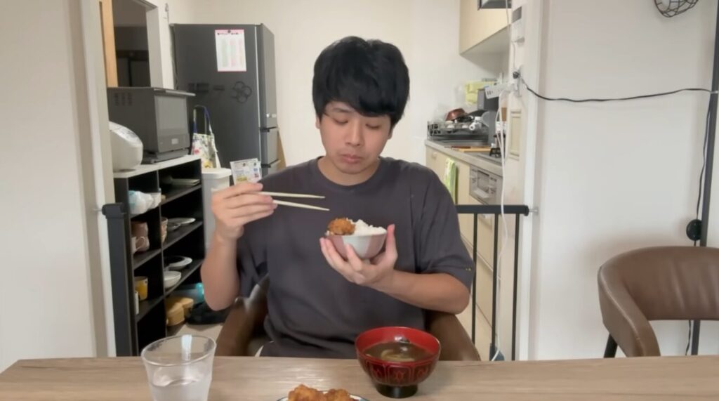 メニューは予め買っておいた唐揚げと、昨日の残りのわかめスープ、前日の余り物のご飯。