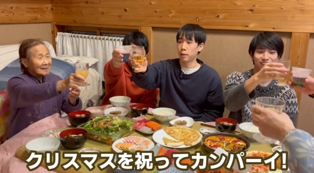 おばあちゃんも加わってクリスマス乾杯