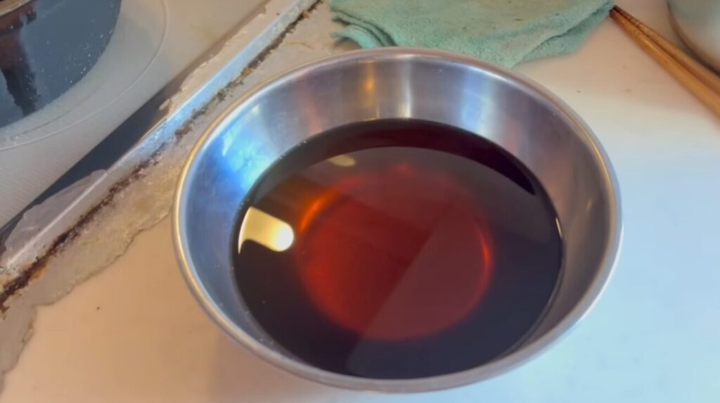 長時間の煮込みを経て、ついにカニ油が完成しました。
