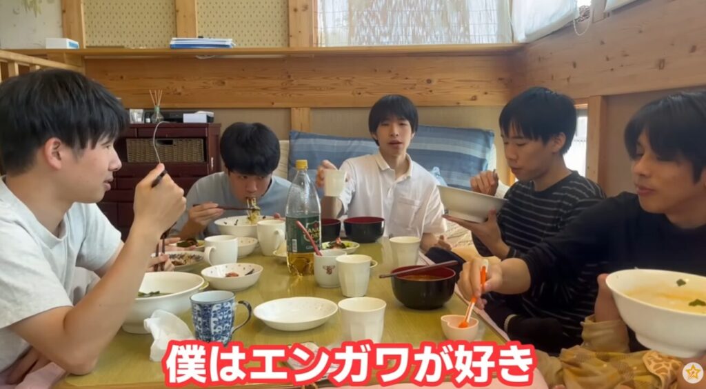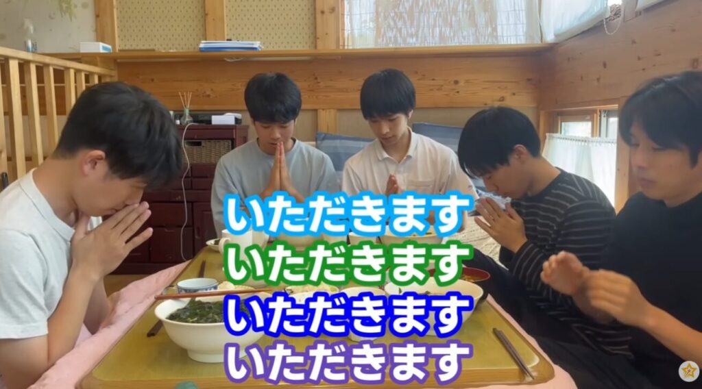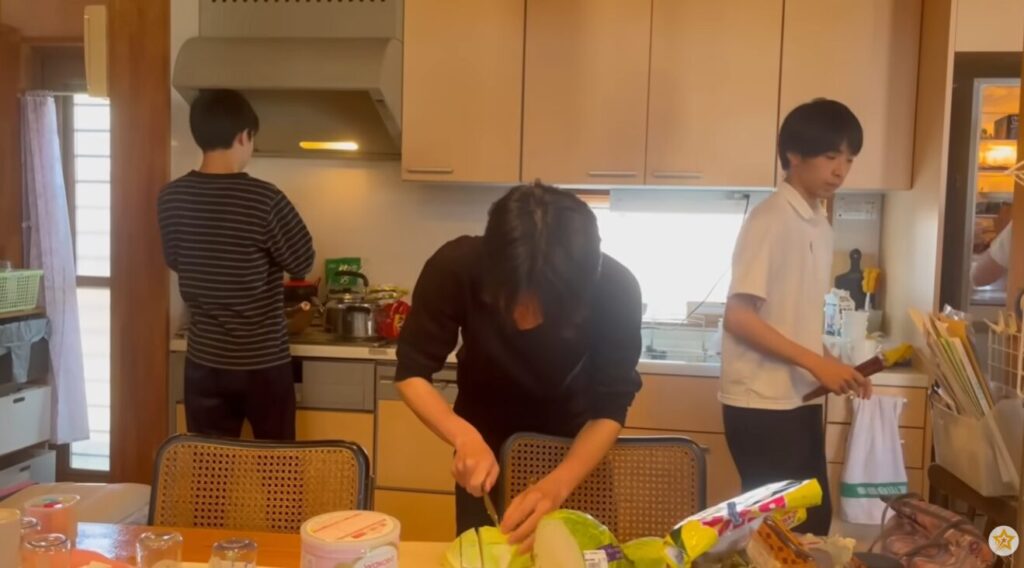 男の子5人がいても狭くない台所、見るからにきちんと片付けられていて、兄弟皆が「僕」と言い、君付けで兄弟を呼び、手を合わせていただきますを言う。 お母様の育て方が本当に素晴らしいです!丁寧に愛情をもって育てられたんだなと、感激します